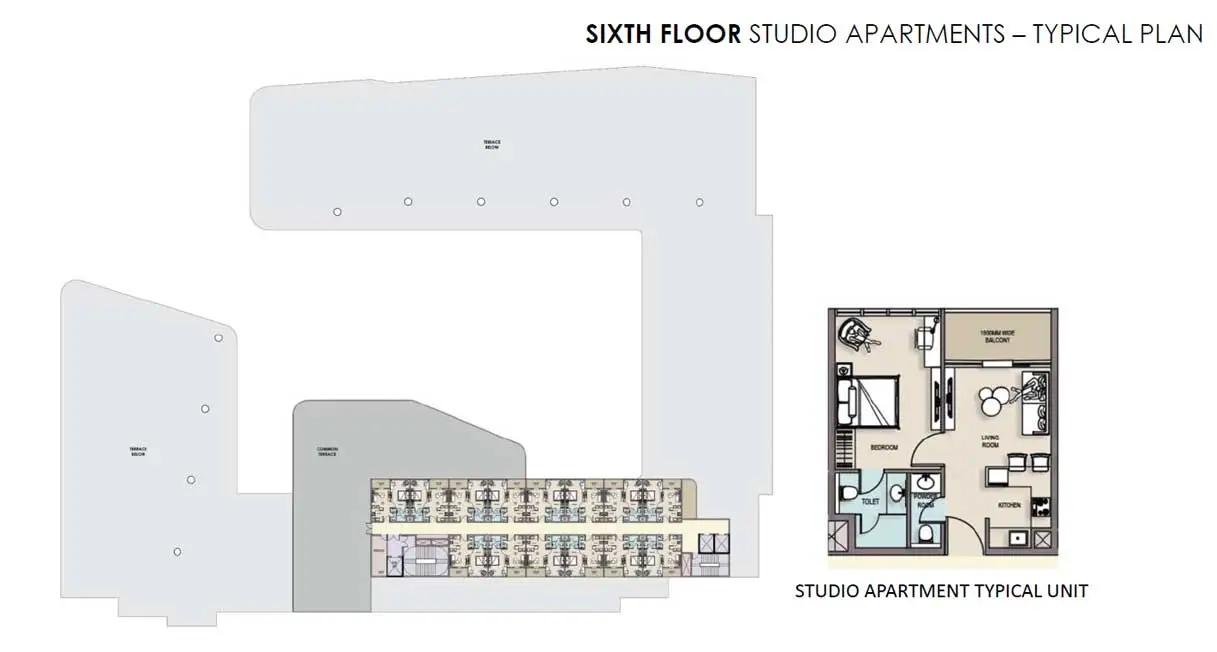 The upper levels feature well-planned serviced apartments offering comfort, privacy, and convenience. Designed for professionals and business travelers, these residences come with modern amenities, dedicated access, and a peaceful living environment within a bustling commercial ecosystem.